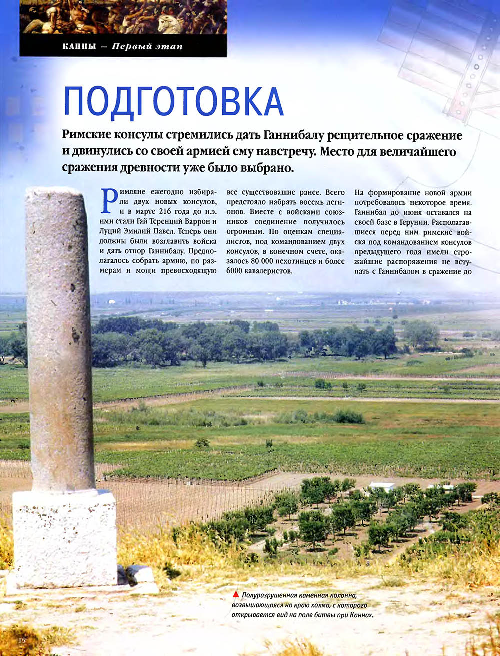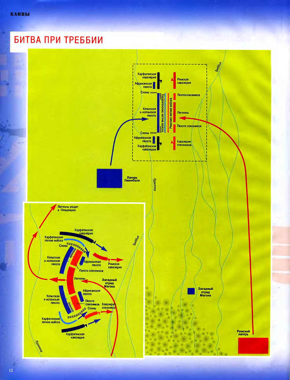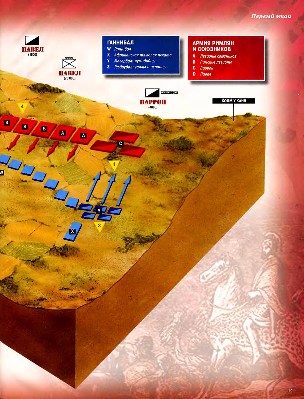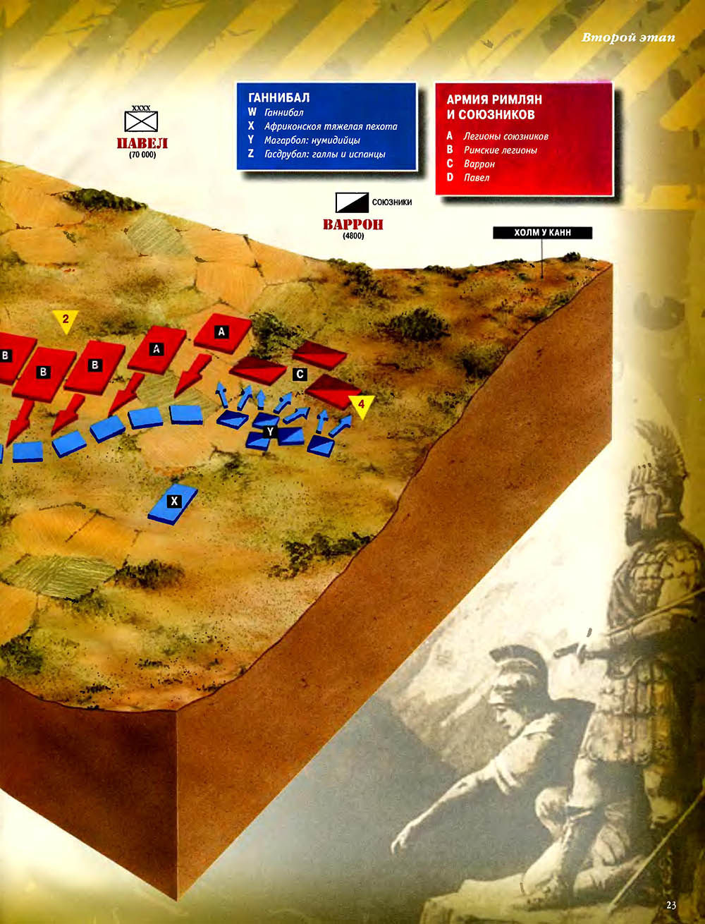 Битва при Каннах считается одним из величайших сражений в мировой истории. Карфагенский полководец Ганнибал, армии которого противостояли численно провосходящие войска римлян, используя особое построение своей пехоты, "втянул" легионы в центральной части своих боевых порядков, разгромил кавалерию противника на флангах, а затем окружил римскую армию и уничтожил ее.