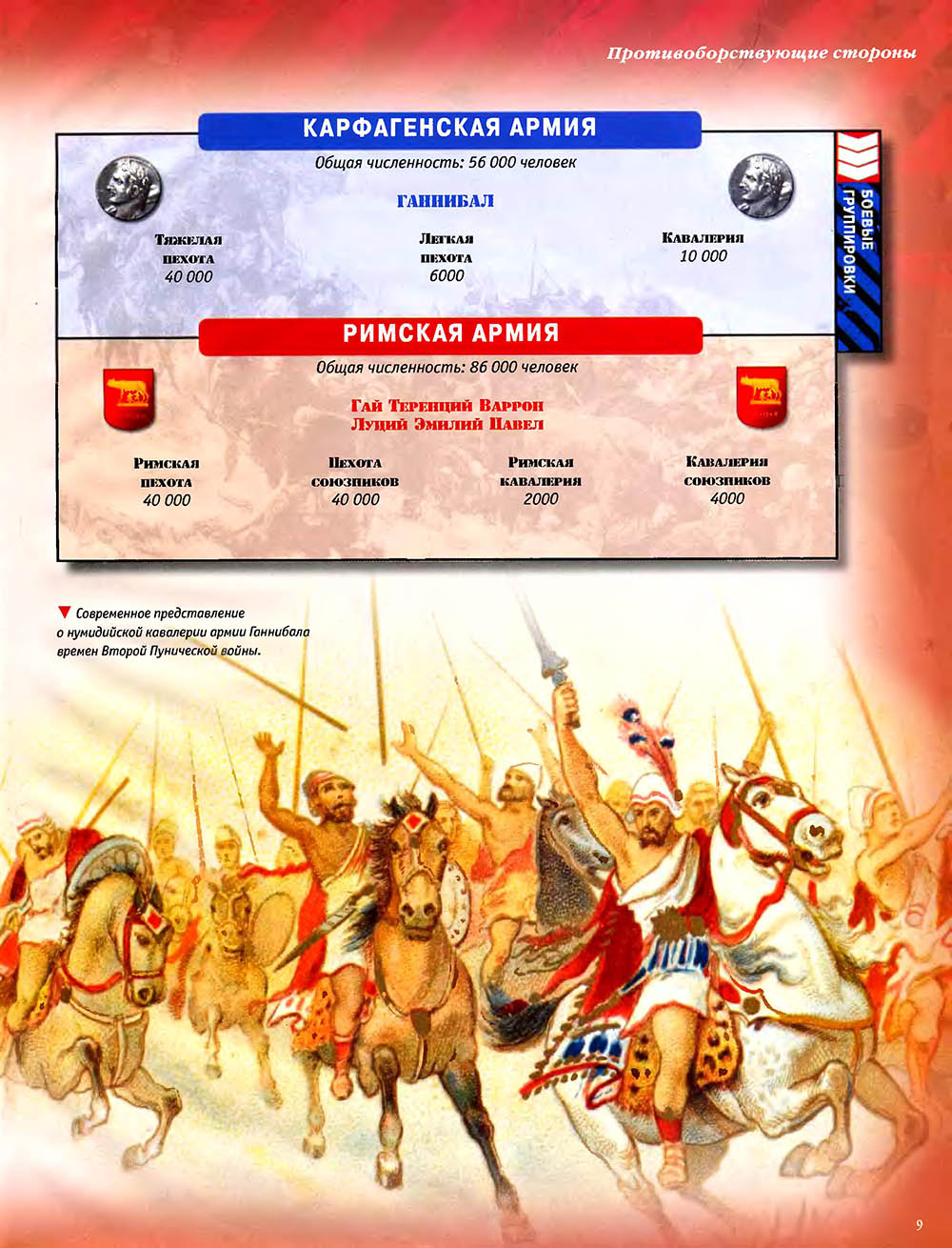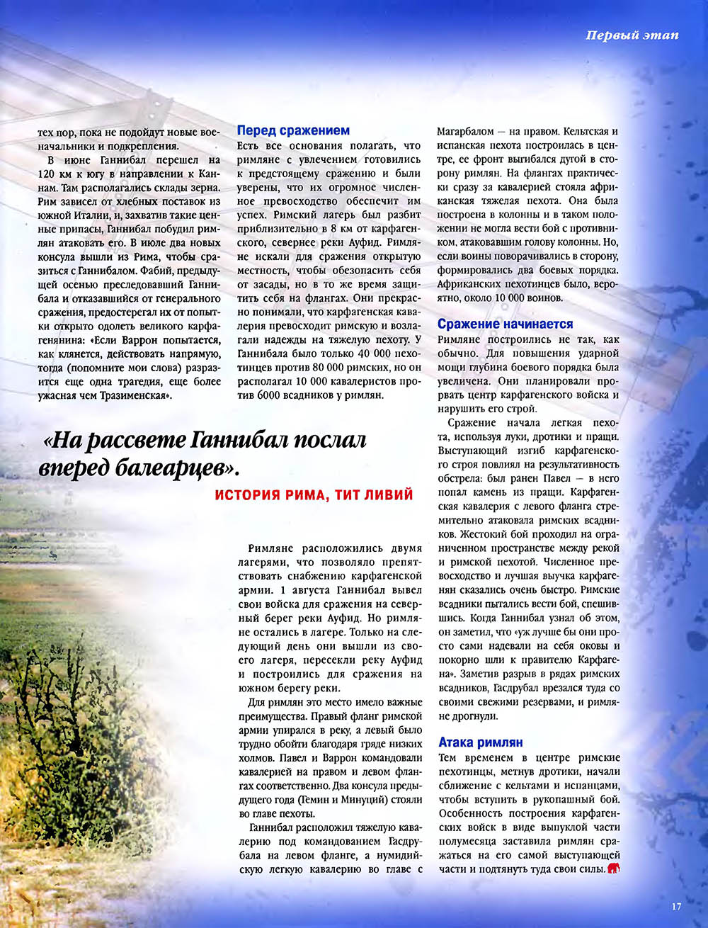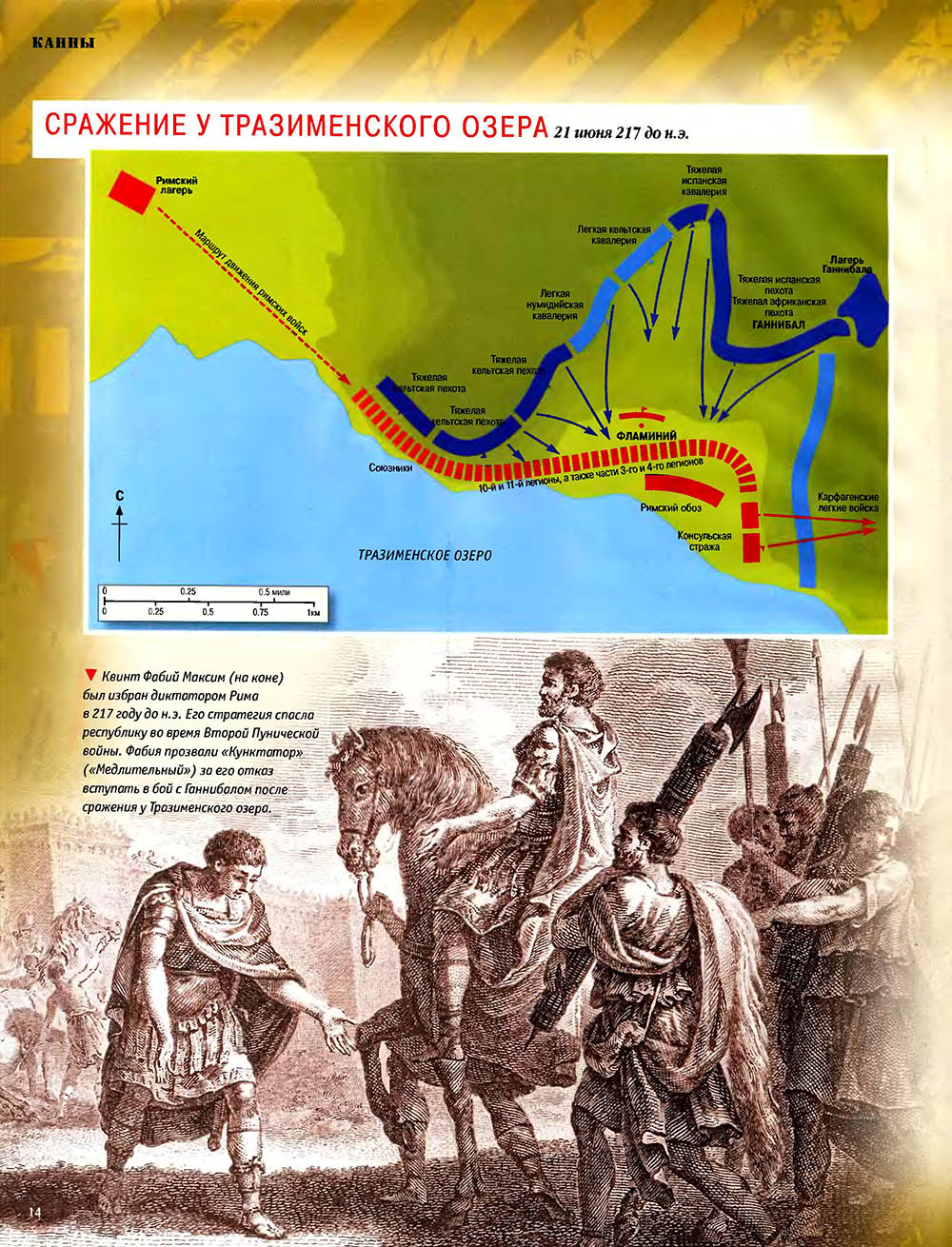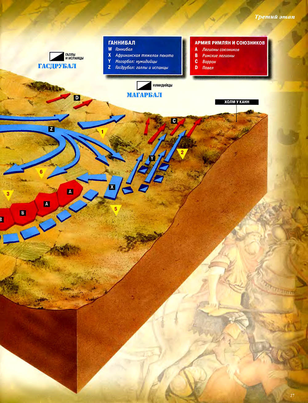 Битва при Каннах считается одним из величайших сражений в мировой истории. Карфагенский полководец Ганнибал, армии которого противостояли численно провосходящие войска римлян, используя особое построение своей пехоты, "втянул" легионы в центральной части своих боевых порядков, разгромил кавалерию противника на флангах, а затем окружил римскую армию и уничтожил ее.