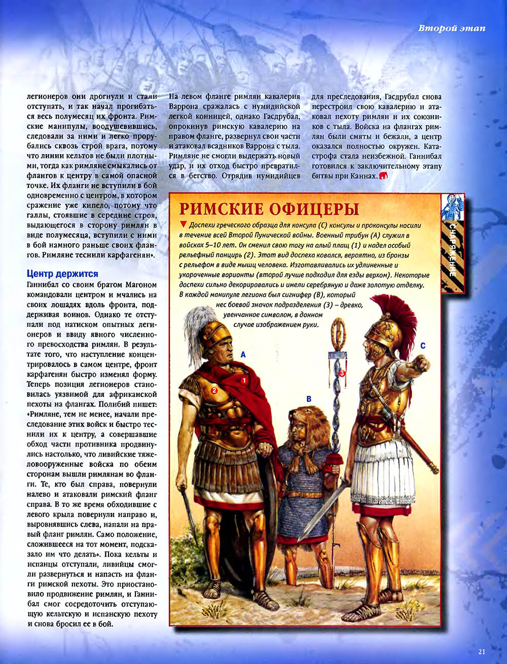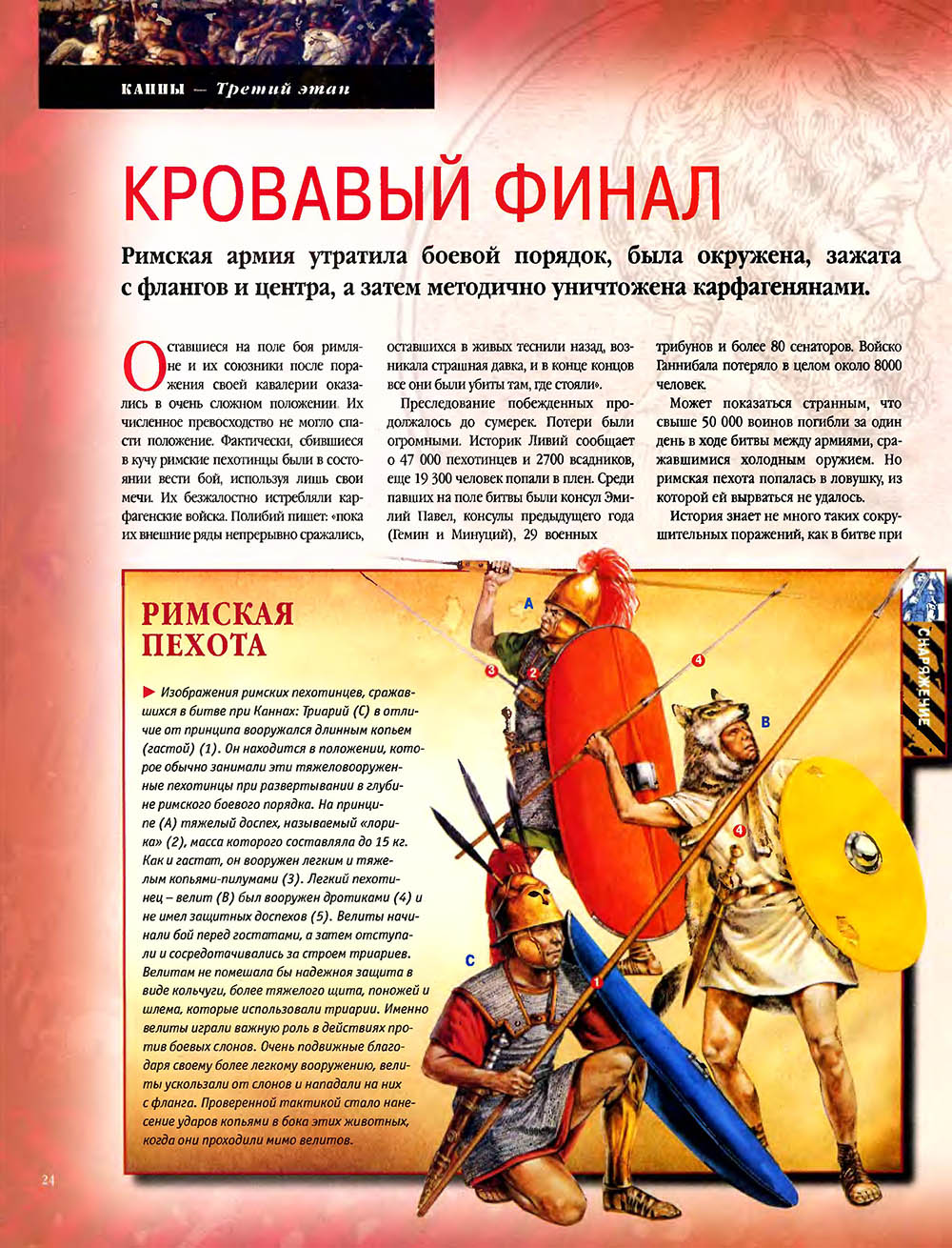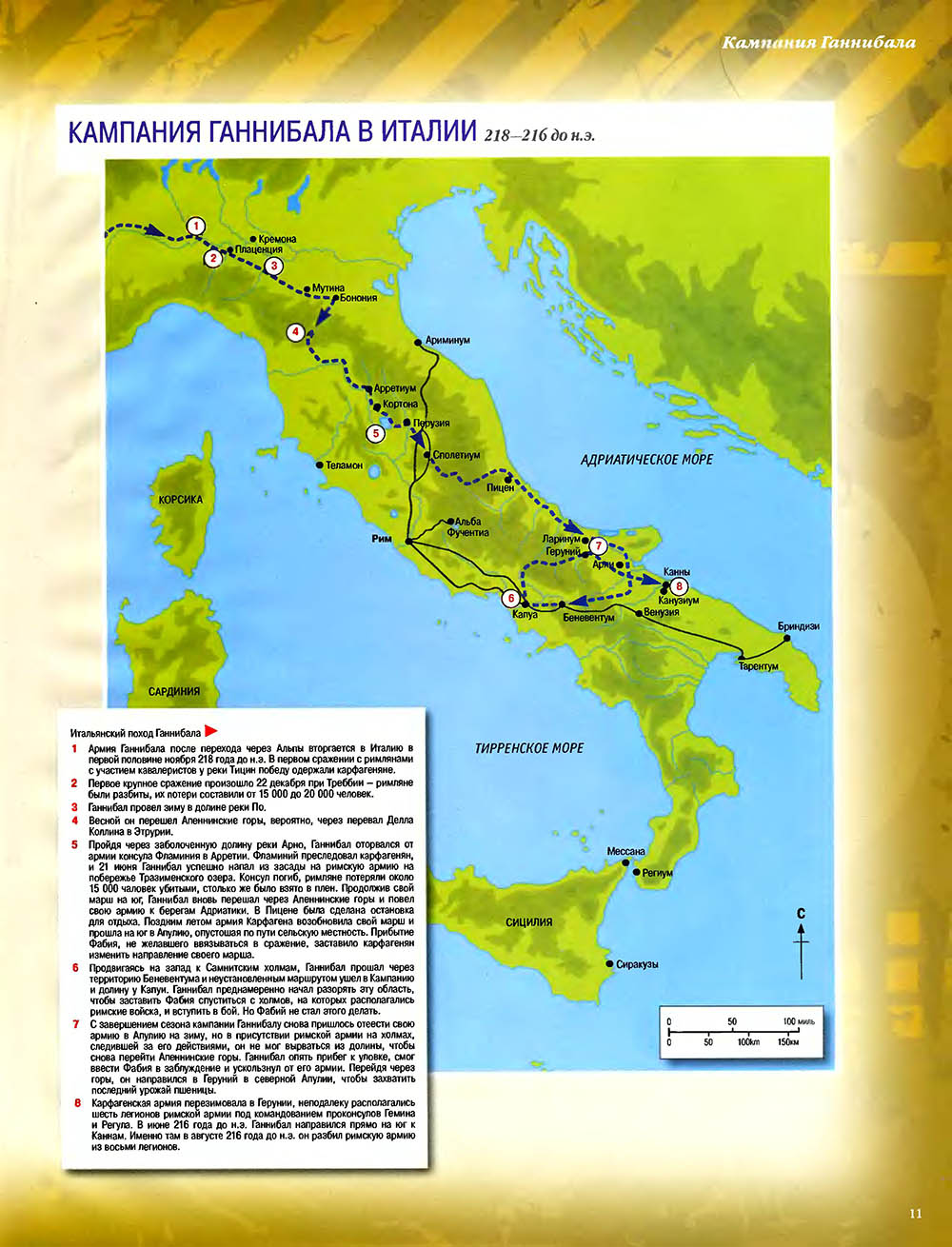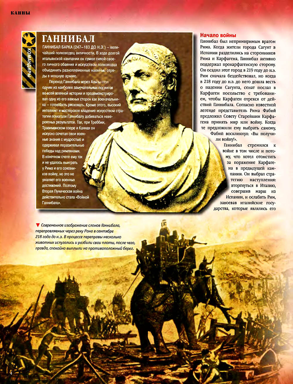Битва при Каннах считается одним из величайших сражений в мировой истории. Карфагенский полководец Ганнибал, армии которого противостояли численно провосходящие войска римлян, используя особое построение своей пехоты, "втянул" легионы в центральной части своих боевых порядков, разгромил кавалерию противника на флангах, а затем окружил римскую армию и уничтожил ее.
