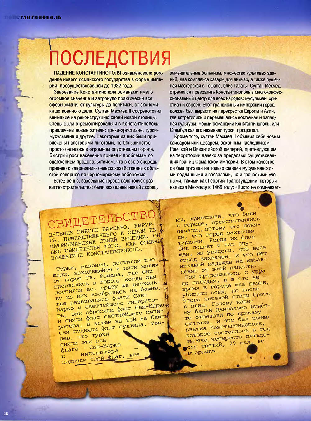 Взятие столицы Византии турками-османами под предводительством султана Мехмеда II ознаменовало не только окончательное падение Восточной Римской империи, но также и утверждение Османской империи в качестве ведущей военной и политической силы на Восточном Средиземноморье и Балканах.
