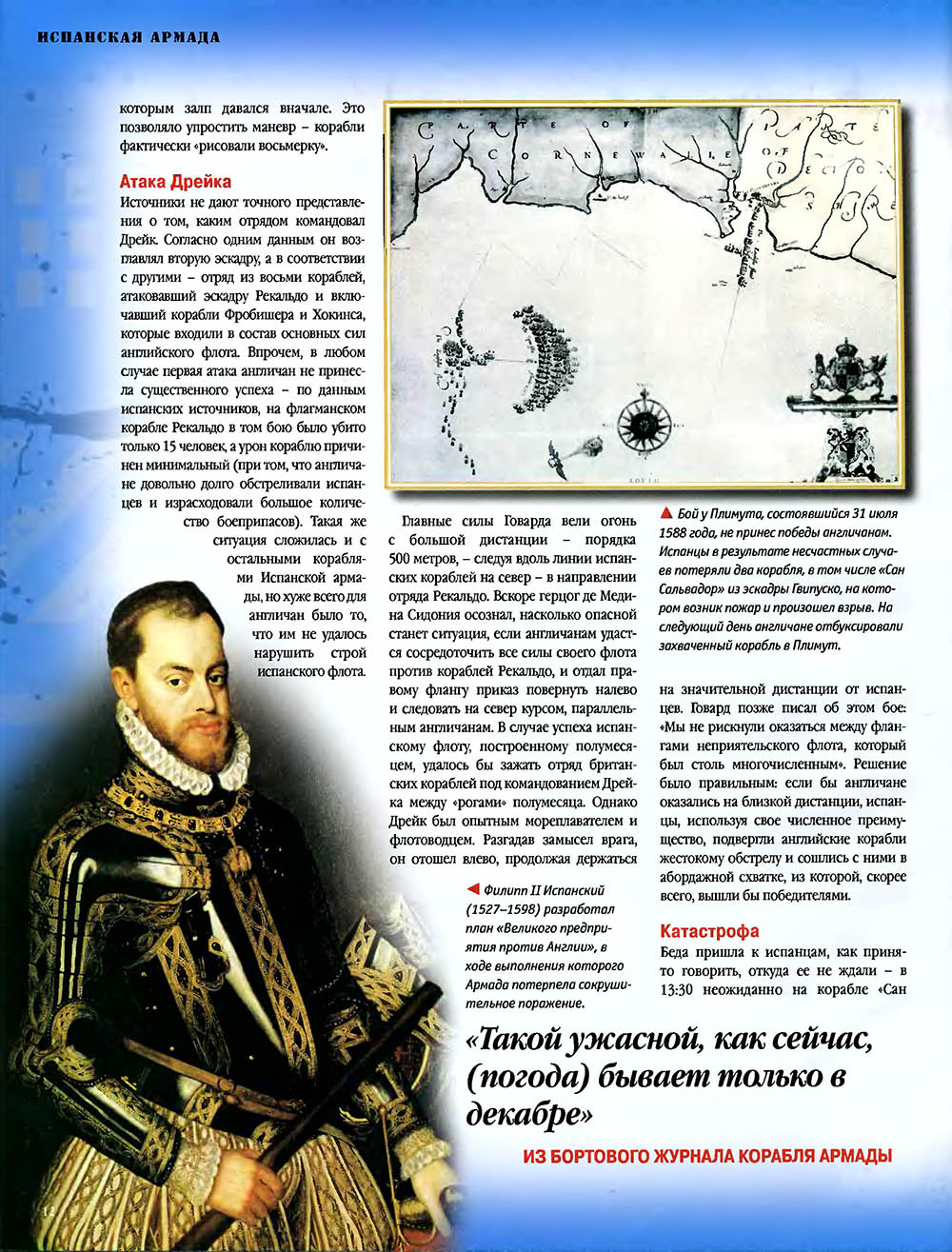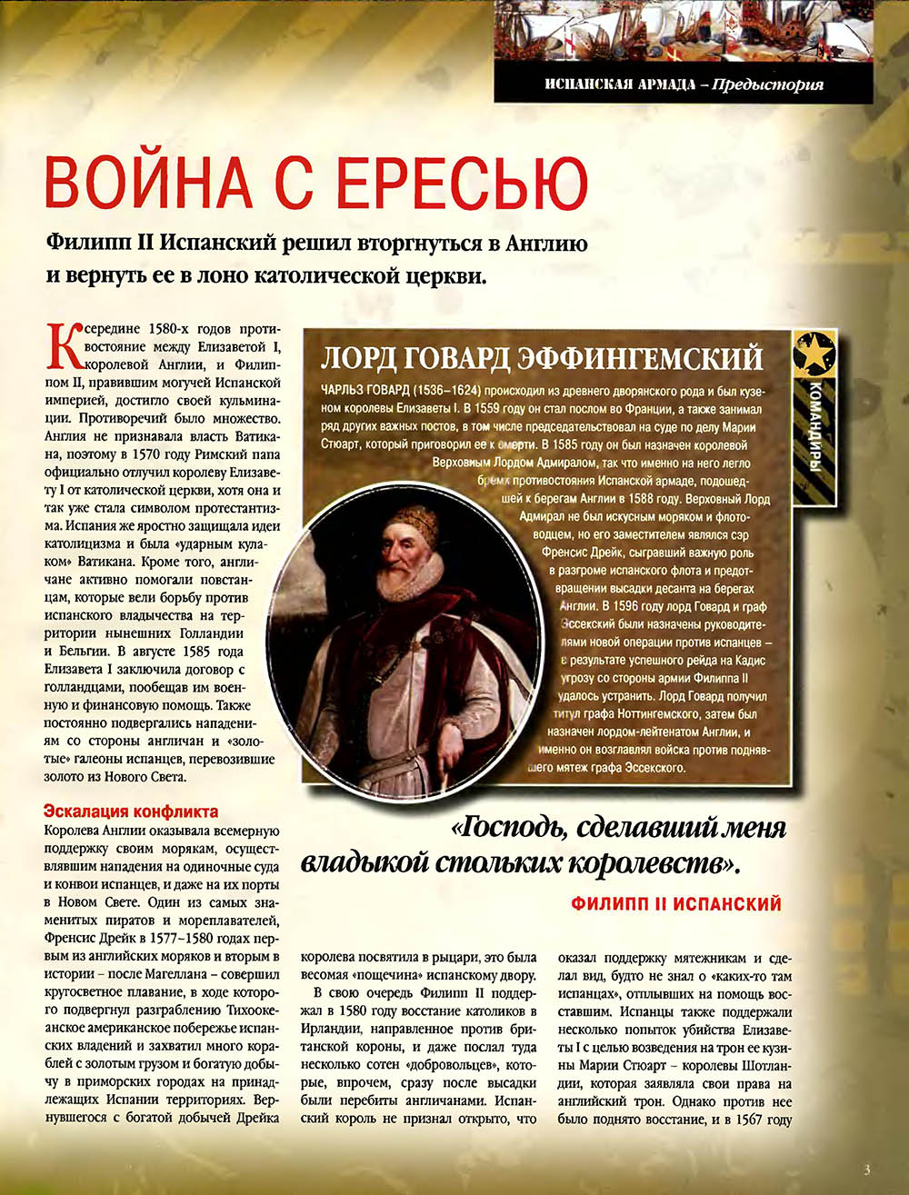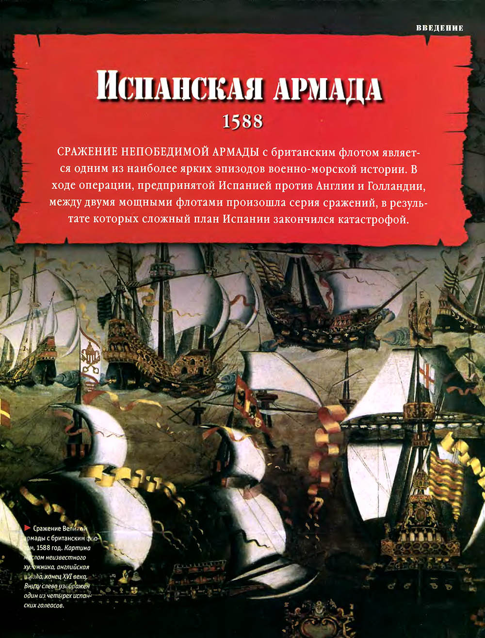Сражение Непобедимой армады с британским флотом является одним из наиболее ярких эпизодов военно-морской истории. В ходе операции предпринятой Испанией против Англии и Голландии, между двумя мощными флотами произошла серия сражений, в результате которых сложный план Испании закончился катастрофой.