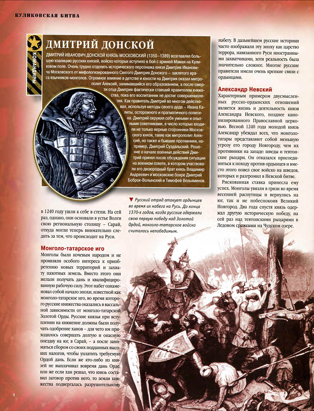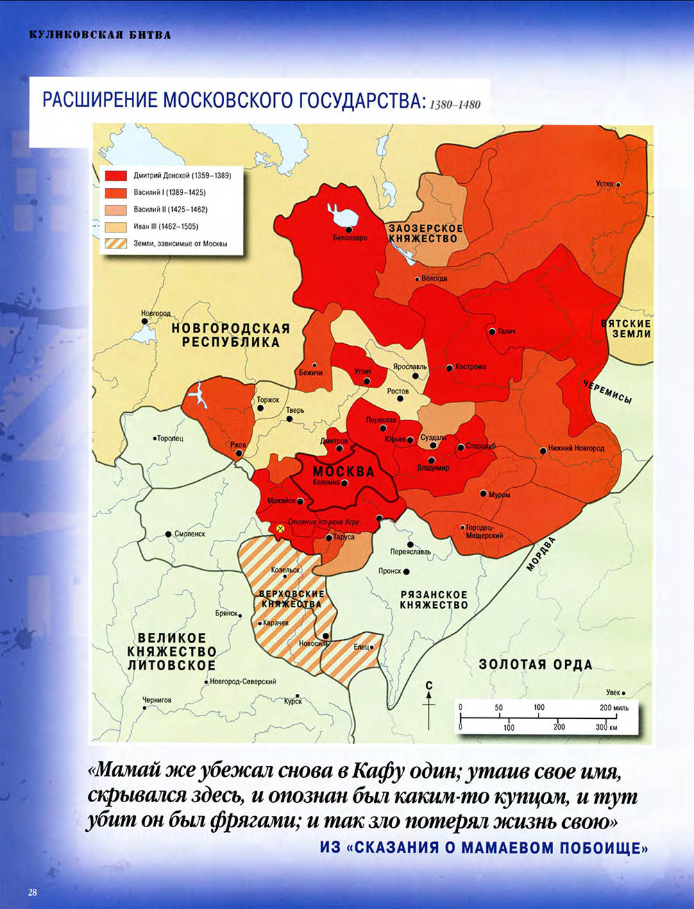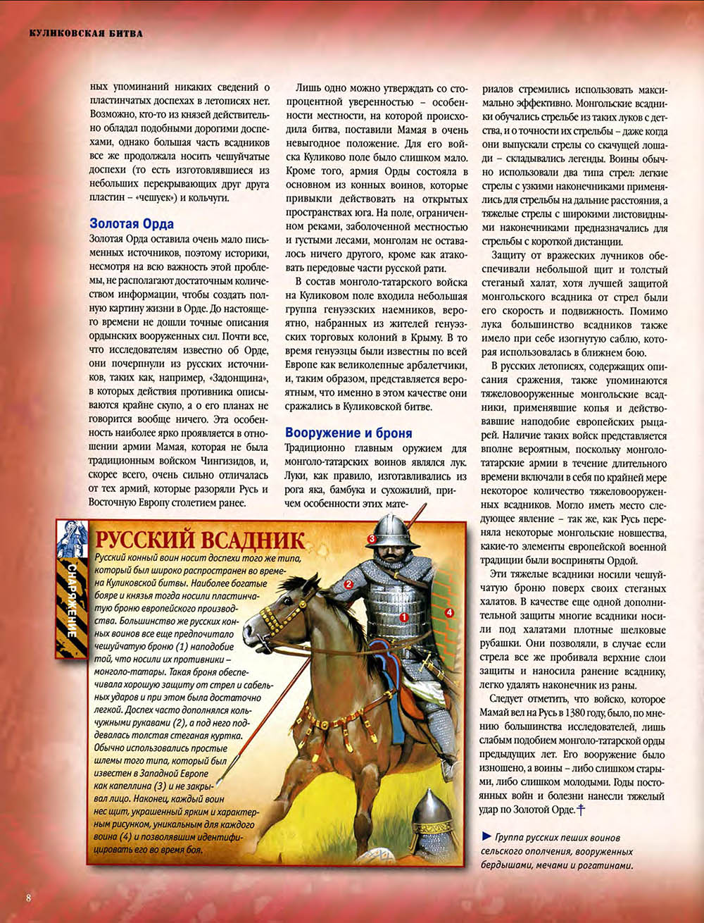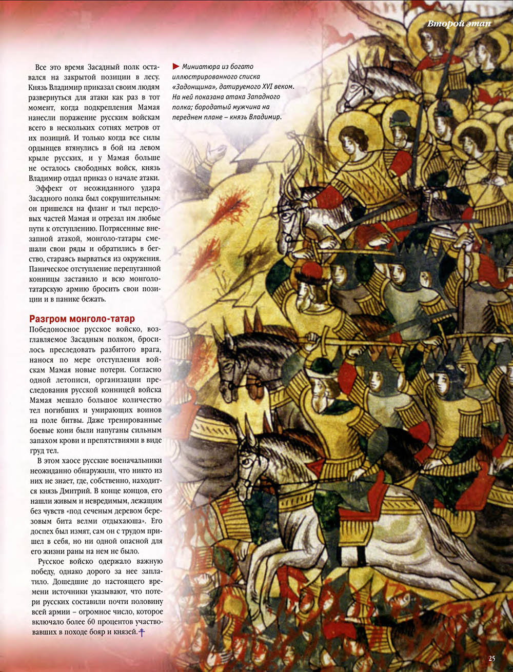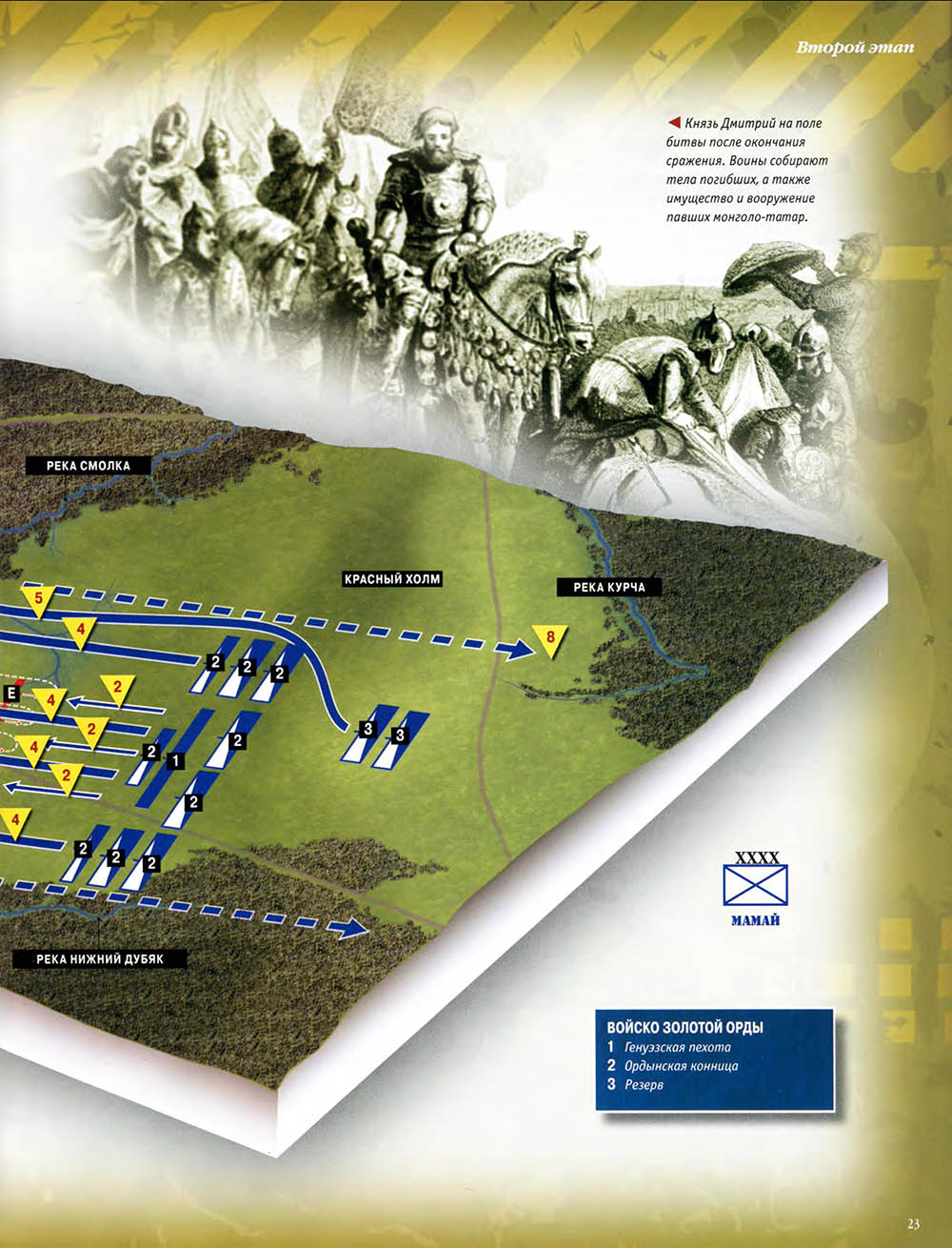 В Куликовской битве русские князья впервые одержали серьезную победу над Золотой Ордой. Это необычно кровавое и ожесточенное сражение закрепило за московским князем Дмитрием Донским первенство на Руси и в дальнейшем способствовало объединению Русского государства.