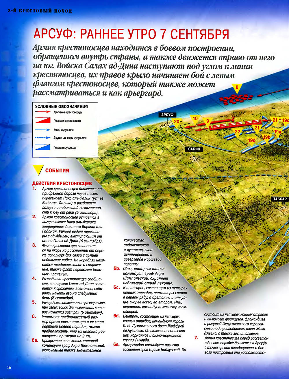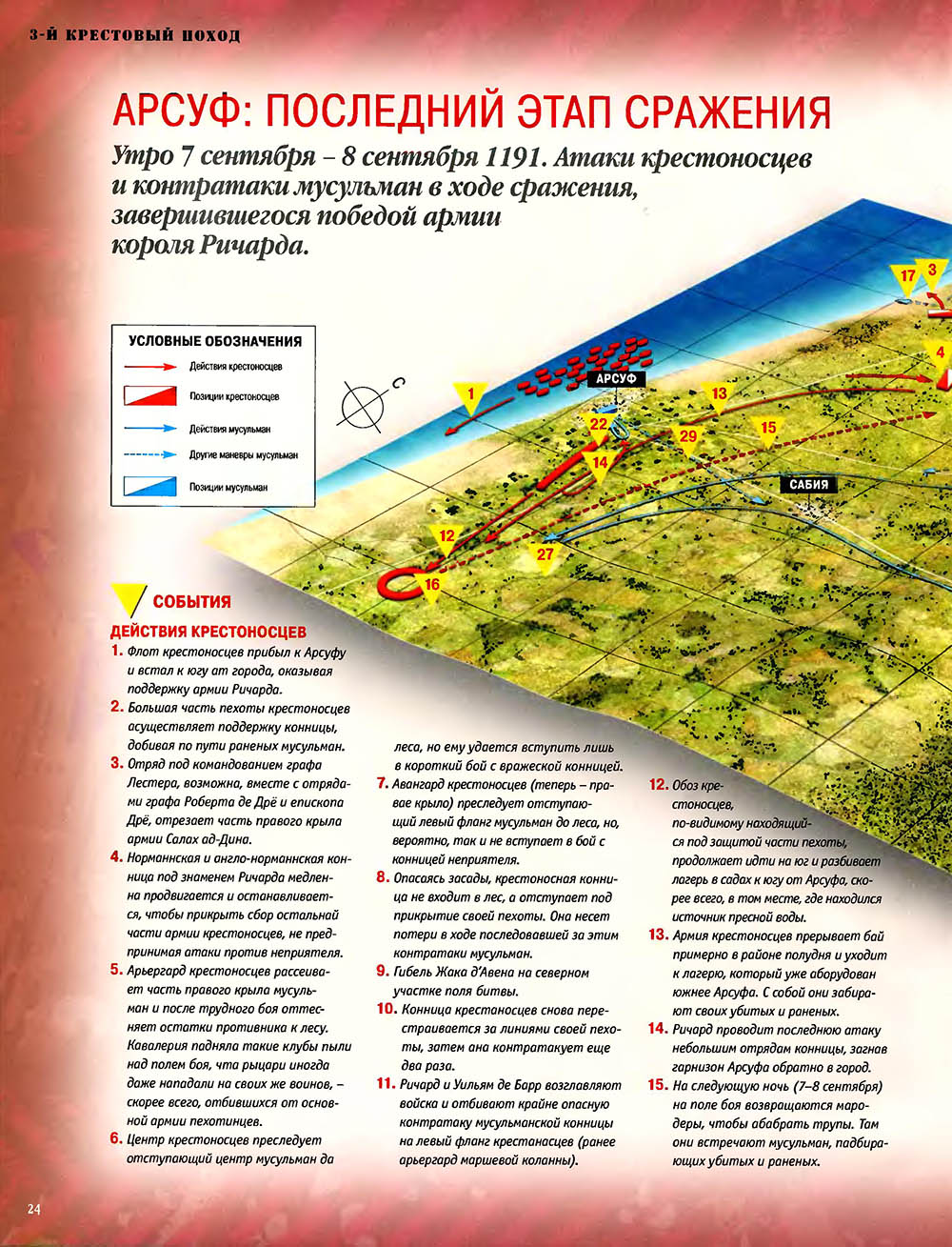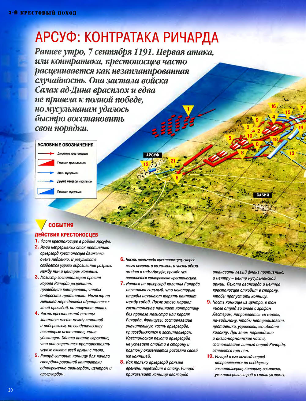 Во время 3-го Кресторого похода крестоносная армия короля Ричарда I Львиное Сердце столкнулась в эпическом сражении с войсками айюбидского султана Салах ад-Дина. Ричарду не удалось нанести противнику окончательного поражения, но его успех показал, что Салах ад-Дин не является непобедимым.