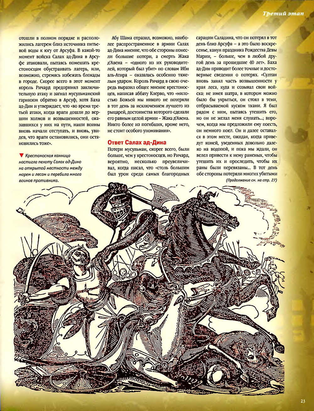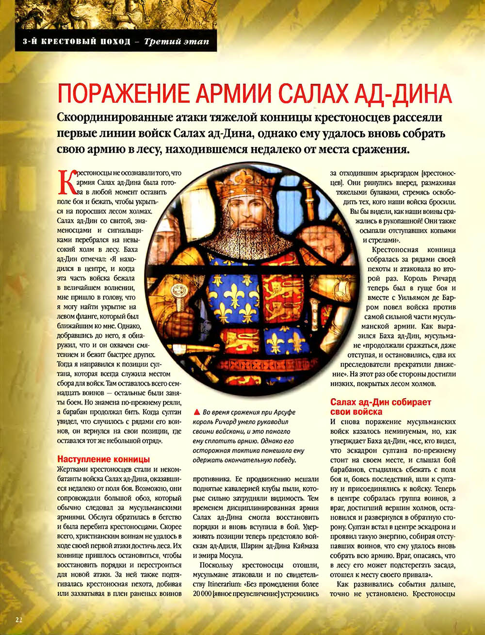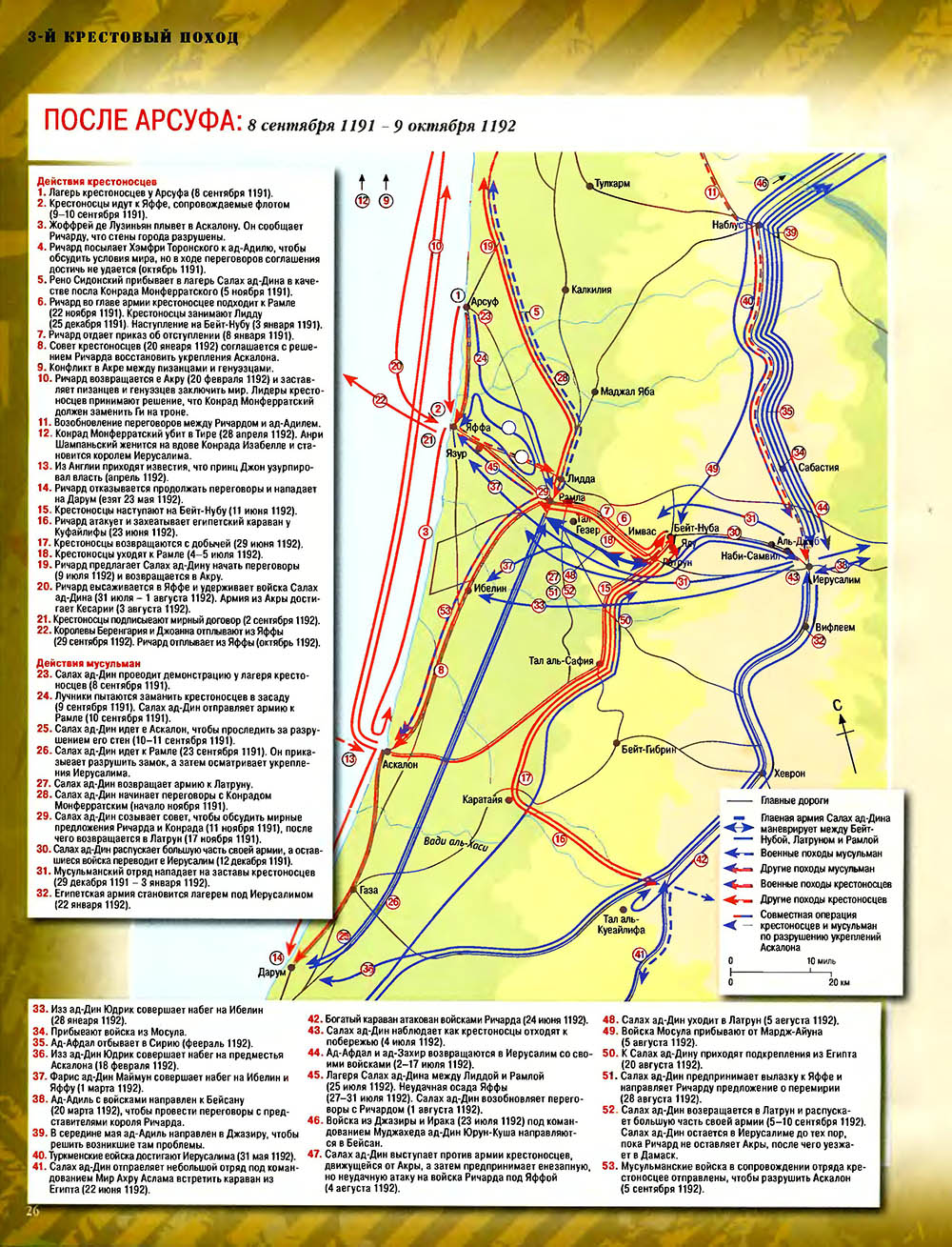 Во время 3-го Кресторого похода крестоносная армия короля Ричарда I Львиное Сердце столкнулась в эпическом сражении с войсками айюбидского султана Салах ад-Дина. Ричарду не удалось нанести противнику окончательного поражения, но его успех показал, что Салах ад-Дин не является непобедимым.