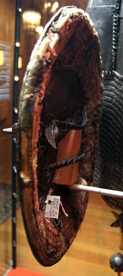 Плелись из прутьев концентрическими кругами вокруг каркаса с оплетением конским волосом. В центре щиты снабжались железным умбоном, дополнительно усиливались накладками. Диаметр щитов составлял 50—70 см.