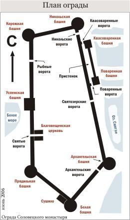 “Подошвенного боя” (боевых амбразур немного выше уровня земли) стена Соловецкого Кремля лишена. Арочные ниши, сделанные на ряде участков стены изнутри Кремля,— почти все глухие; они имели не боевое, а хозяйственное назначение.