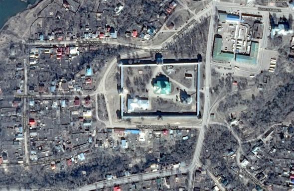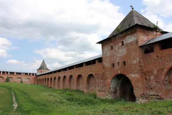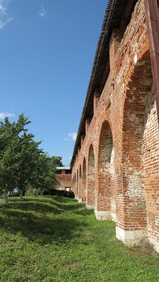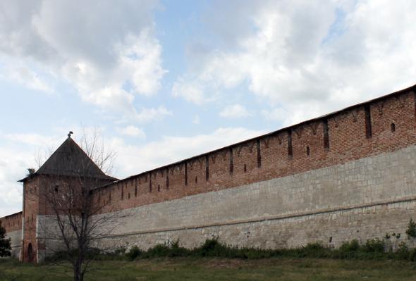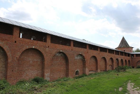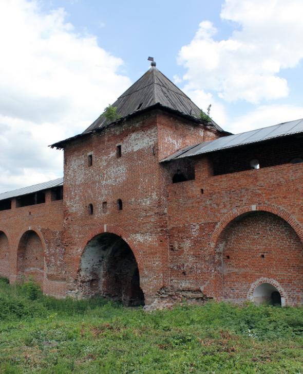 В 1528—1531 годах по приказу Василия III внутри Острога был построен каменный кремль. Каменный кремль, сооружённый в 1528—1531, занимает площадь 125×185 м, прямоугольный в плане, длина стены по периметру около 500 м.