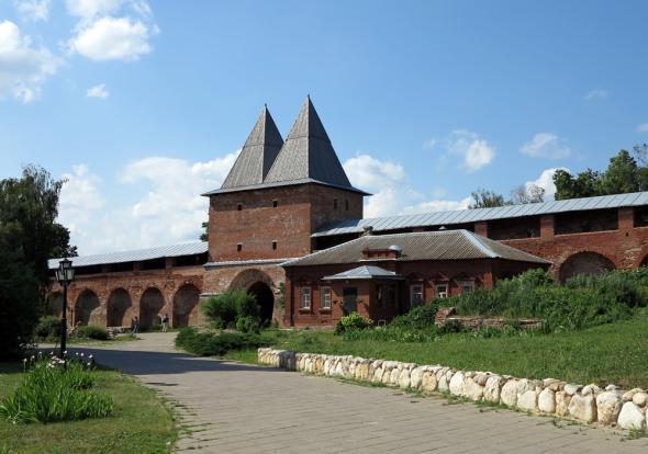 В кремле 7 башен (Никольская, Казенная, Кабацкая, Спасская, Тайницкая, Богоявленская и Караульная), три из которых являются проездными, Никольская башня имеет также отводную стрельницу. В восточной стене в 1789 году были пробиты ворота, называемые Троицкими.