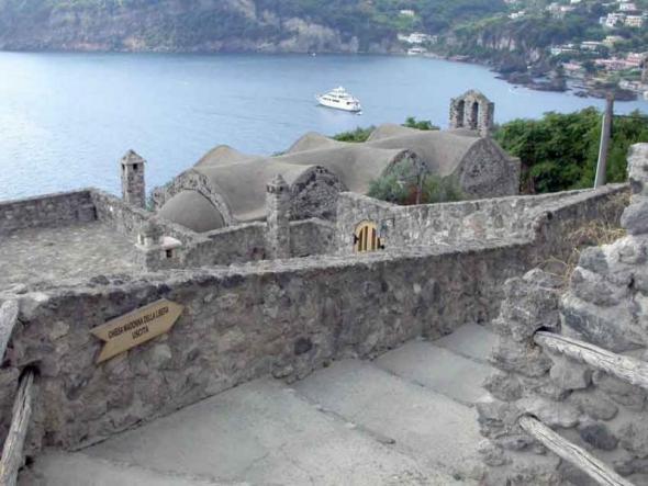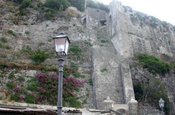 КремлиАрагонский замок был построен на конусе, который образовался в результате остывания вулканической лавы, выходящей из Тирренского моря. В своё время принадлежал аристократическому роду д’Авалос.