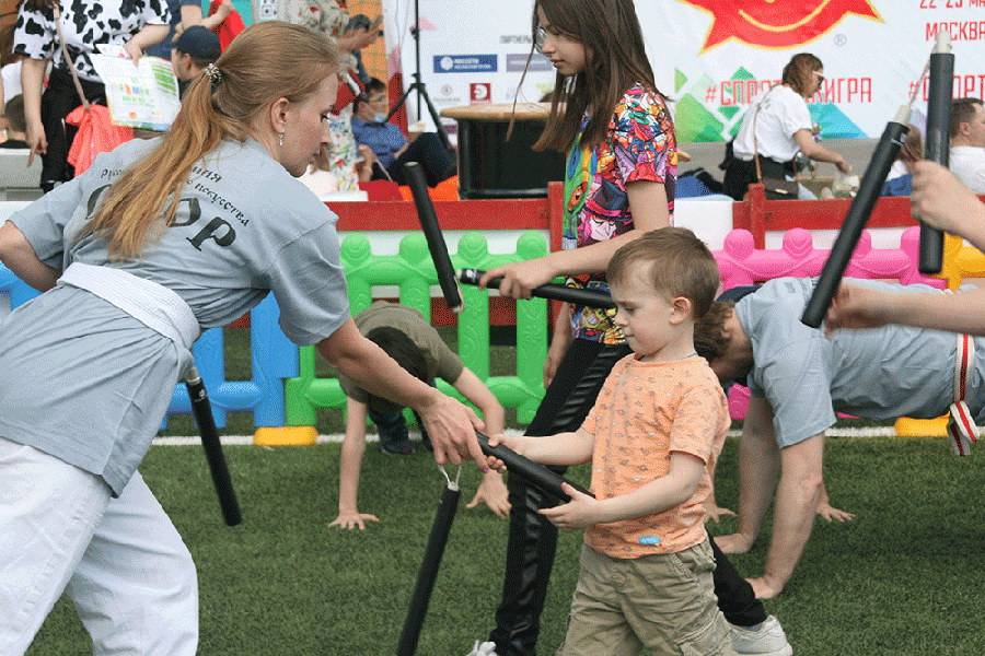 «Спорт как игра»: спортивные батуты, баскетбол и мини-гольф, стрельба в тире, участие в мастер-классах по различным единоборствам, историческому фехтованию и многим другим, традиционным и нетрадиционным видам спорта, эстафеты «Я люблю тебя, Спорт». Фестиваль развлекательных и игровых программ в индустрии семейного досуга «ДЕТИ+».
